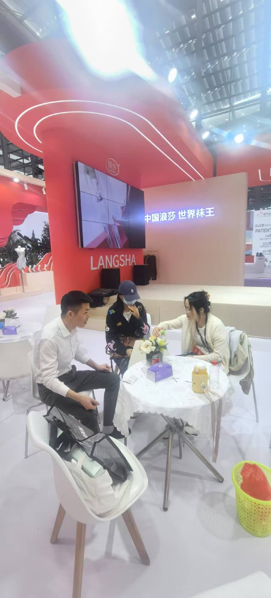 本次參展,浪莎聚焦三大目標:強化品牌高端形象、展示智能化新品、拓展海內外合作伙伴。據浪莎控股集團有限公司營銷總監徐宏介紹,在產品端,浪莎以兩大創新方向引領行業:一是以“科技賦能”,全新推出的智能溫控發熱內衣,采用自適應材料實現動態調溫,精準滿足戶外運動、商務通勤等場景需求;二是進行“綠色時尚轉型”,推出環保系列產品,并聯合非遺工藝大師打造文化IP系列,將傳統刺繡與現代設計融合,傳遞國潮美學。