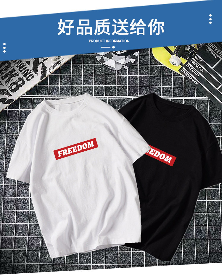 【100%純棉】2021春季爆款t恤男士韓版潮流字母印花短袖圓領(lǐng)T恤男