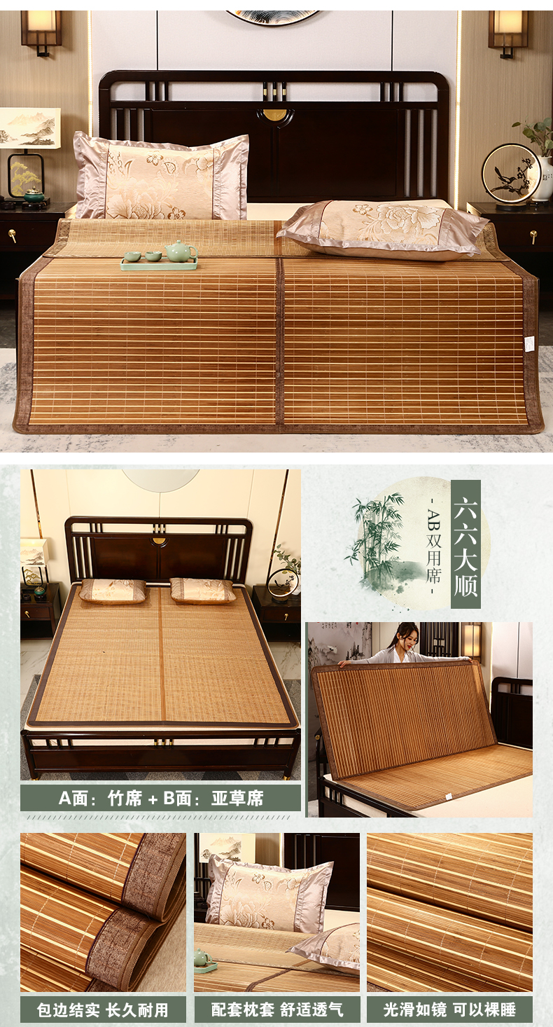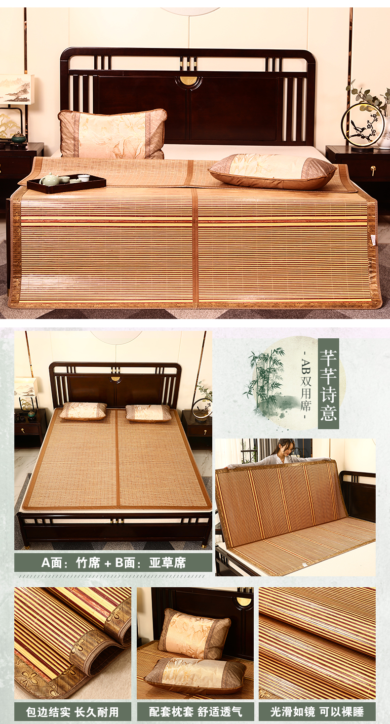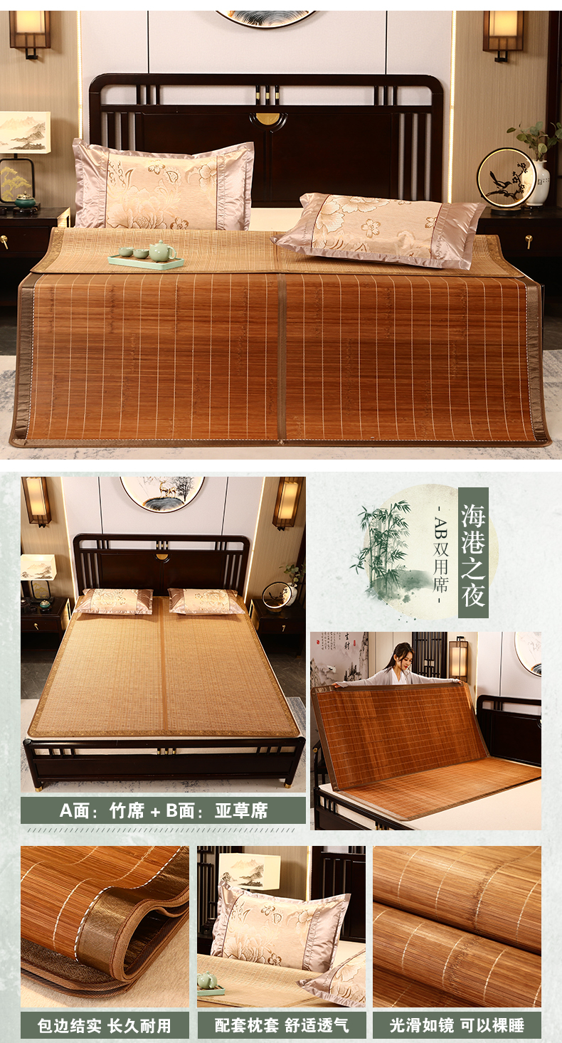 夏季碳化竹席可折疊席子單雙人宿舍1.5米1.8m床空調(diào)涼席雙面可用