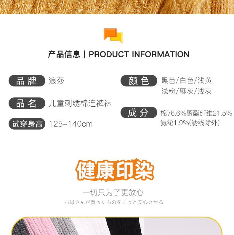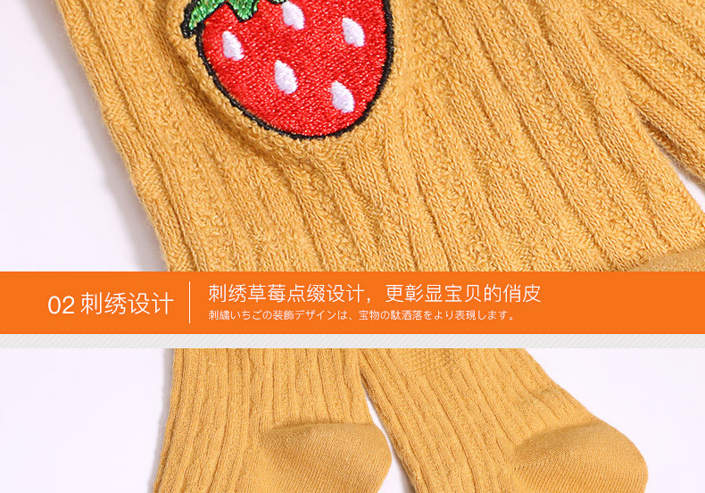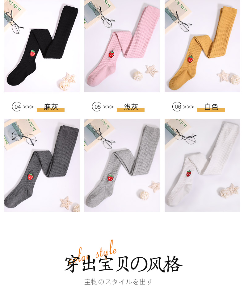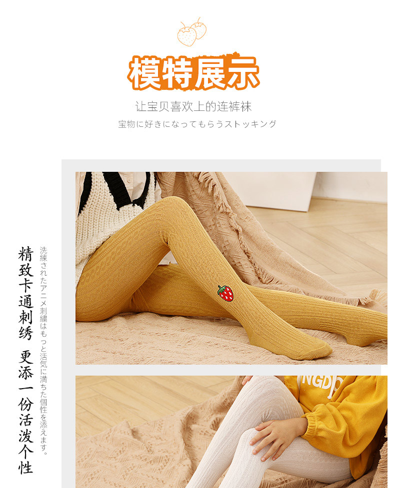 浪莎兒童連褲襪秋冬季女童刺繡草莓打底襪寶寶糖果色麻花條紋襪子