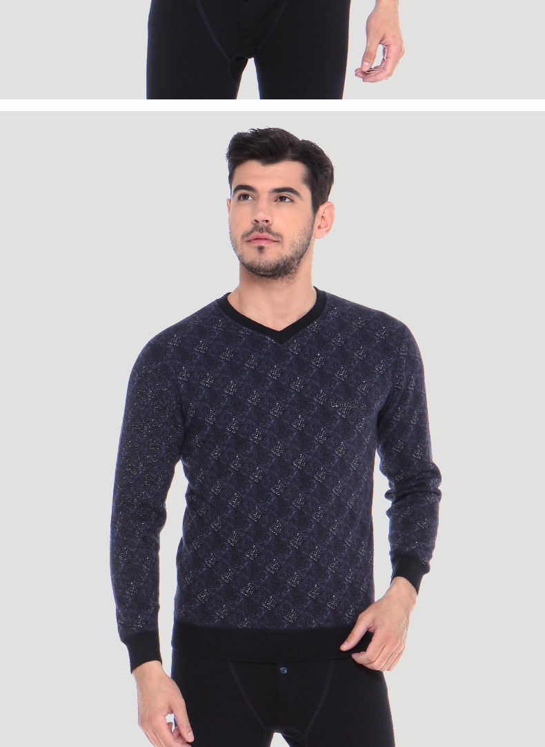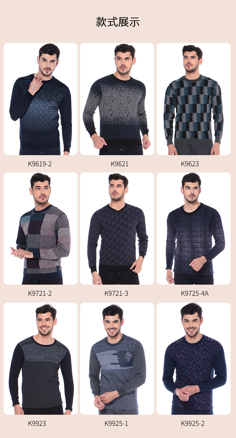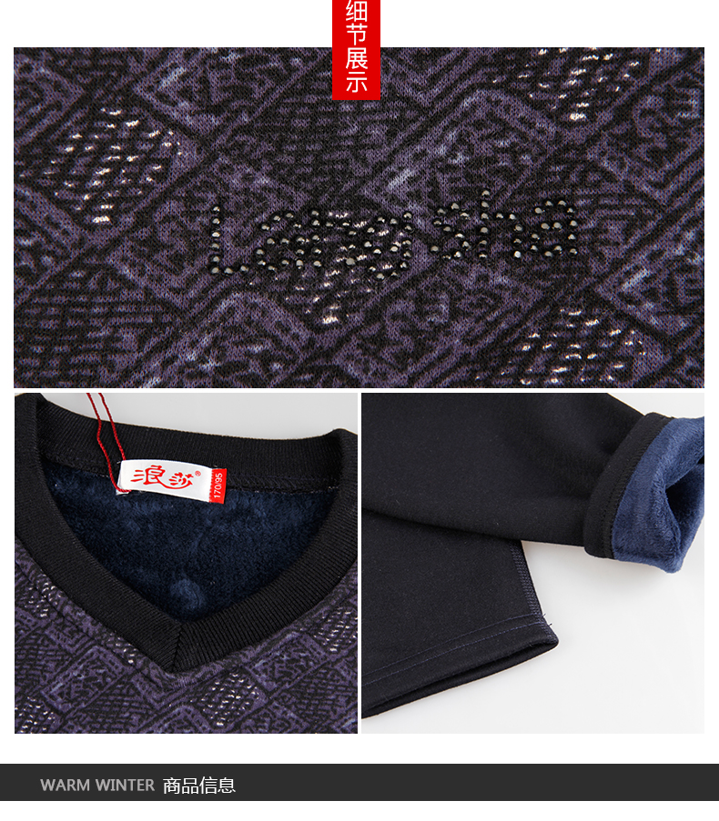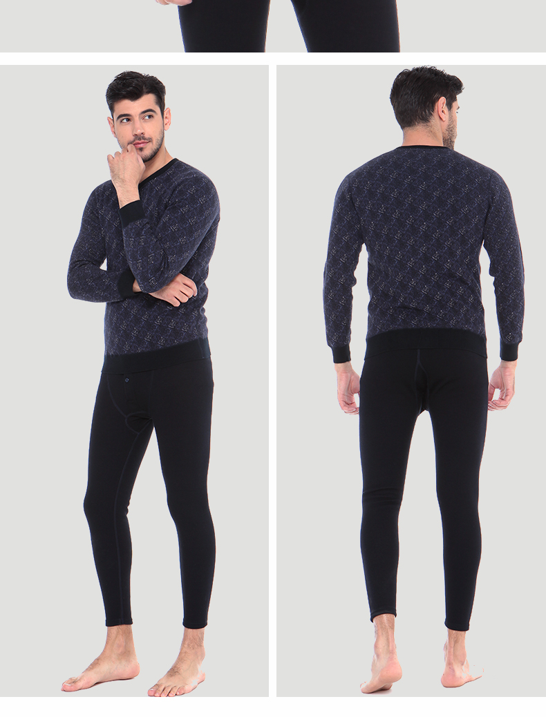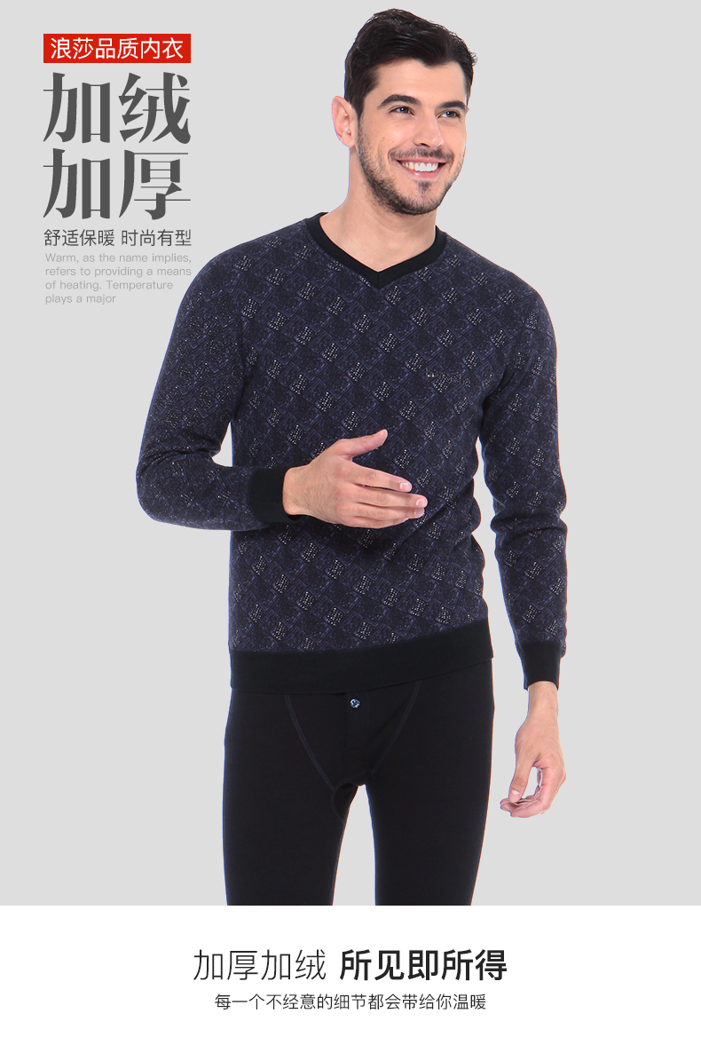 浪莎時(shí)尚加絨加厚保暖內(nèi)衣套裝男士中年格子秋衣秋褲冬季打底防寒
